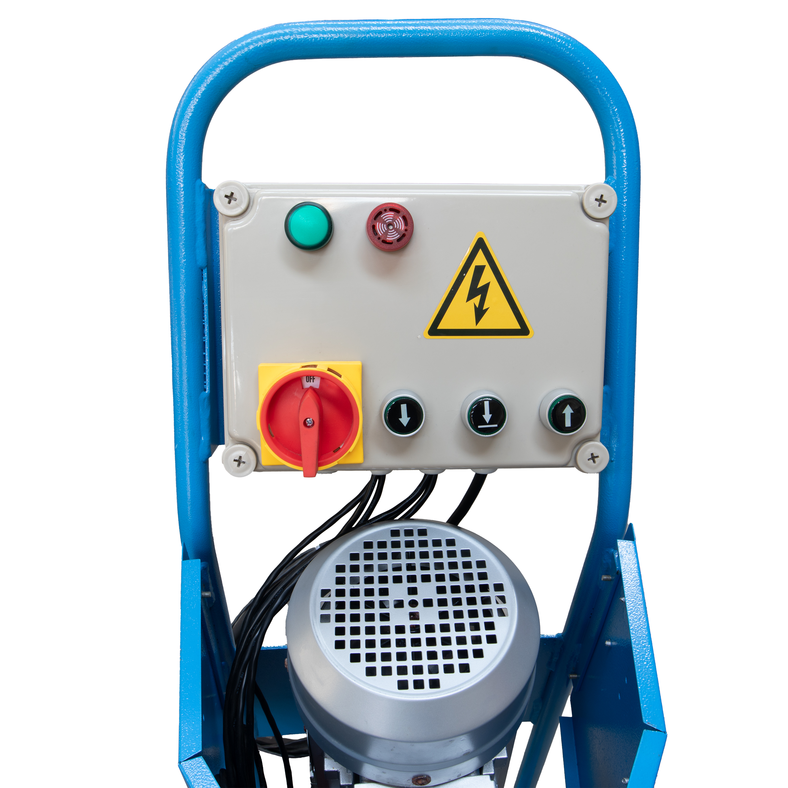 - Cutie de control de joasă tensiune de 24 V cu întrerupător principal, butoane Sus, Jos, Blocare și indicator luminos de alimentare